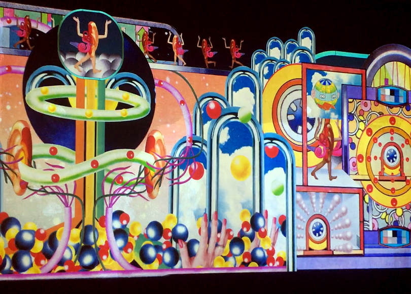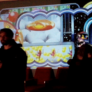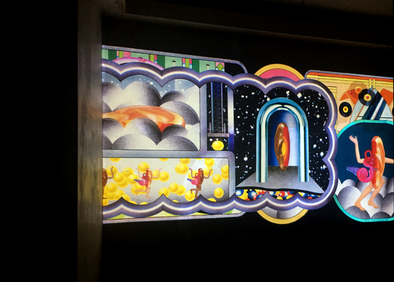 The animation was displayed across three walls in Foyer A, the main thoroughfare for attendees en route to see presentations by Goldie, NASA’s Jet Propulsion Laboratory and many others